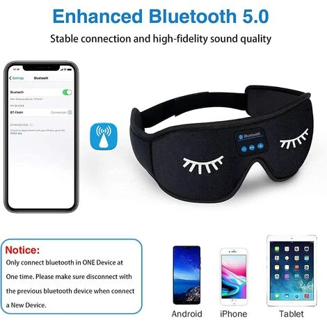 【10 heures de lecture continue】: nos masques pour casque Bluetooth offrent une batterie rechargeable USB améliorée, une charge d’environ 2 à 2,5 heures offre plus de 10 heures de temps de lecture. Le masque Bluetooth n’émettra pas de bip pour vous réveiller, vous dormirez très bien.