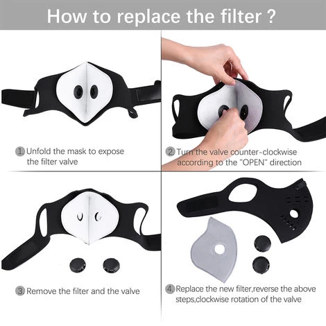 – La housse de masque est lavable. Veuillez retirer le filtre lors du lavage (les filtres à charbon actif ne peuvent pas être lavés).