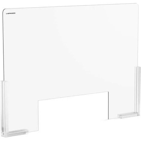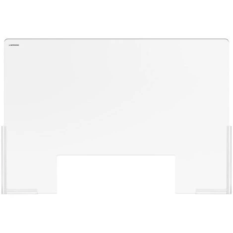 Que ce soit au comptoir, à la caisse, à la pharmacie ou chez le médecin : le pare-haleine universel UNI-PPG03 d’Uniprodo vous protège efficacement – vous, votre équipe et vos client·e·s – contre les gouttelettes projetées par les personnes qui toussent, éternuent ou postillonnent. Cet écran de protection transparent de 95 x 65 cm forme une barrière quasiment invisible qui arrête les gouttelettes. Son ouverture de 38 x 25 cm permet d’échanger documents, cartes, espèces et marchandises. Elle est aussi idéale pour les salons de beauté et les ongleries. Le pare-haleine d’une épaisseur de 3 mm s’assemble en quelques secondes, sans outil. Une fois monté, il est très stable sur ses deux pieds. Étant donné qu’il est entièrement fait de verre acrylique transparent, il n’obstrue pas la vue et ne déforme pas les objets. Adoptez cette mesure d’hygiène dès aujourd’hui et rendez votre lieu de travail plus sûr !