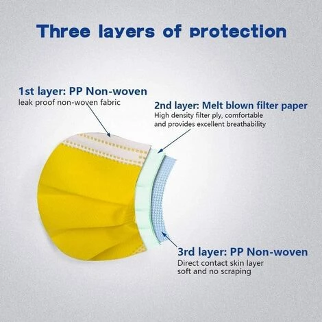 Conception à 3 couches avec boucles d’oreille flexibles pour un ajustement confortable Efficacité de fiLation bactérienne élevée (BFE) Embout nasal flexible à armature métallique entièrement fermée Protège contre la poussière, la sciure de bois et d’autres irritants en suspension dans l’air Doux, inodore et non irritant